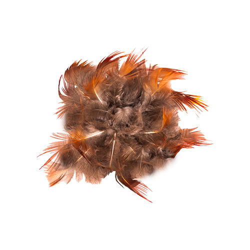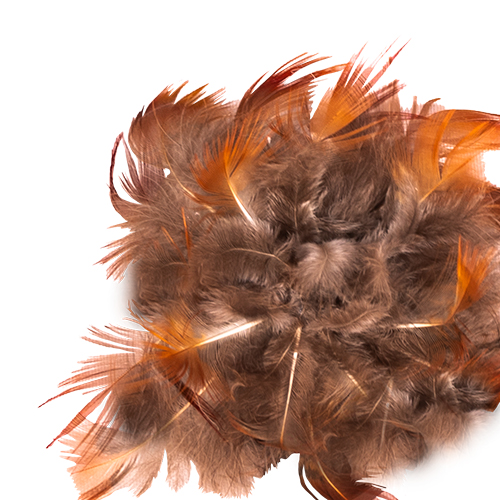 PRENDEDOR DE PLUMA (CAFÉ CON ROJO) POR SANDRA NOGUERA
