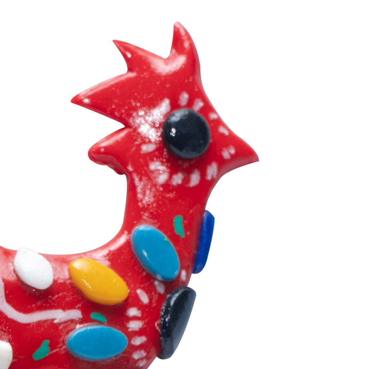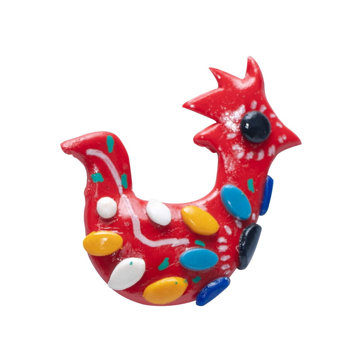 Este imán de Gallo Rojo está elaborado a mano en porcelana fría, con detalles coloridos que resaltan la esencia del folclore hondureño. El gallo, símbolo de valentía y carácter, es reinterpretado en esta pieza artesanal vibrante y alegre. Perfecto para decorar tu hogar, regalar o coleccionar, este imán representa el orgullo y la identidad de nuestra tierra en un pequeño pero significativo detalle cultural.