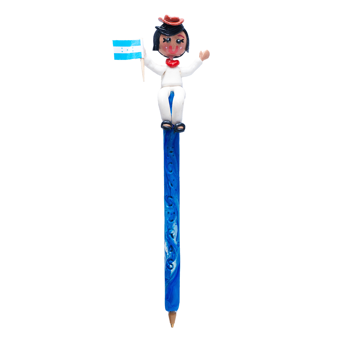 Este lápiz artesanal celebra la esencia de Honduras a través de su diseño único: un adorable catrachito elaborado en porcelana fría, vestido con atuendo típico y bandera nacional. Cada pieza es cuidadosamente pintada y detallada a mano, convirtiéndola en un pequeño homenaje a la tradición catracha. Perfecto para regalar, coleccionar o usar día a día, este lápiz combina utilidad y cultura, llevando contigo un pedacito de Honduras en cada trazo.