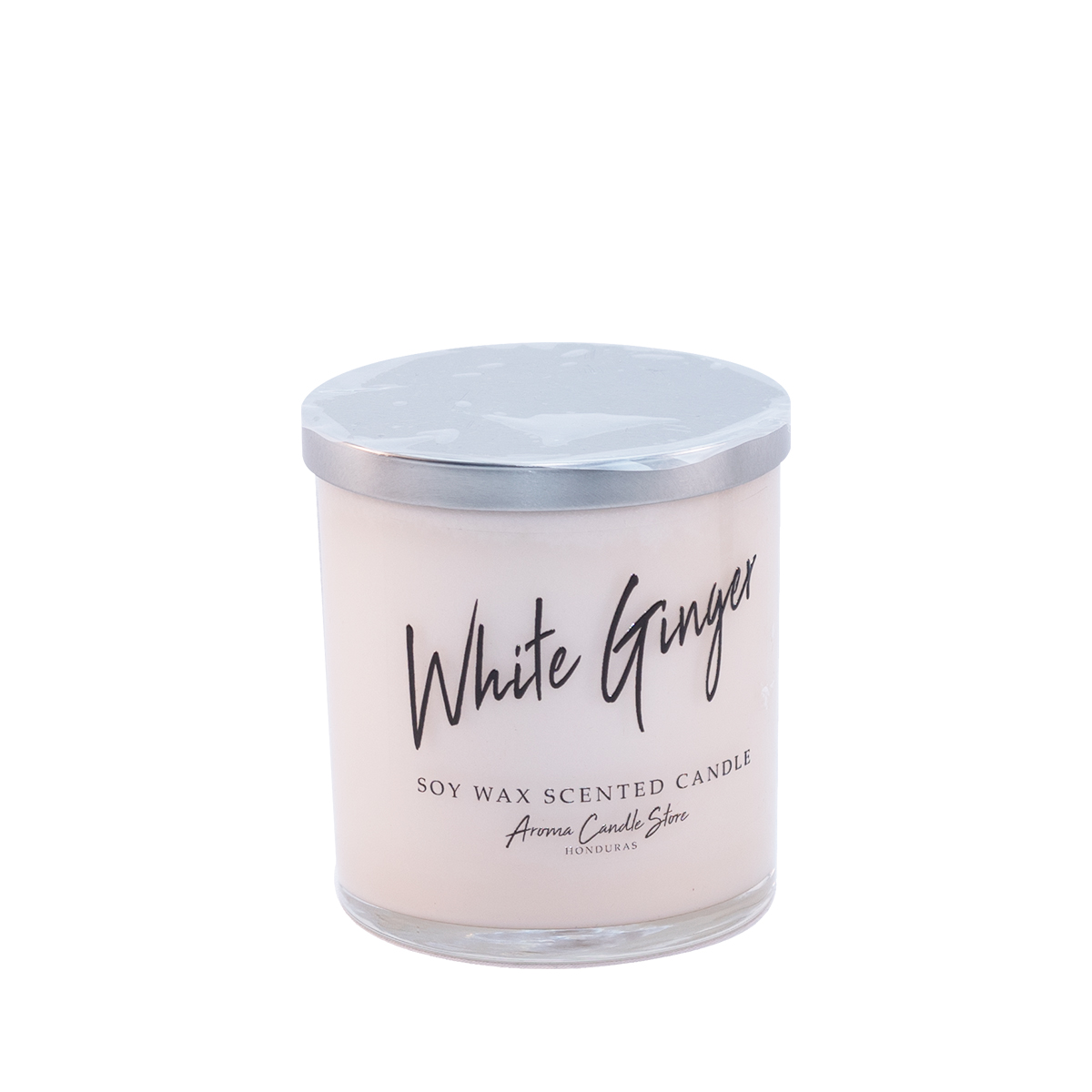 Vela de soya en elegante contenedor de vidrio con tapadera metálica, 10 oz de cera.