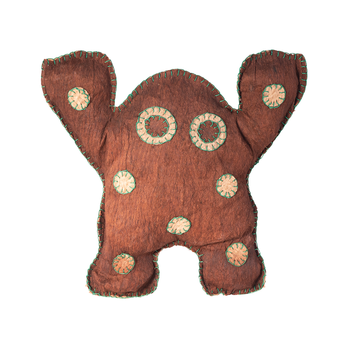 El Peluche de Tuno en forma de Sapo de In Vitro es una creación artesanal hondureña elaborada con tuno, un material natural que le otorga un acabado rústico y auténtico. Confeccionado en tonos cafés y detalles bordados, este juguete no solo es un objeto decorativo, sino también un recuerdo lleno de identidad y tradición.