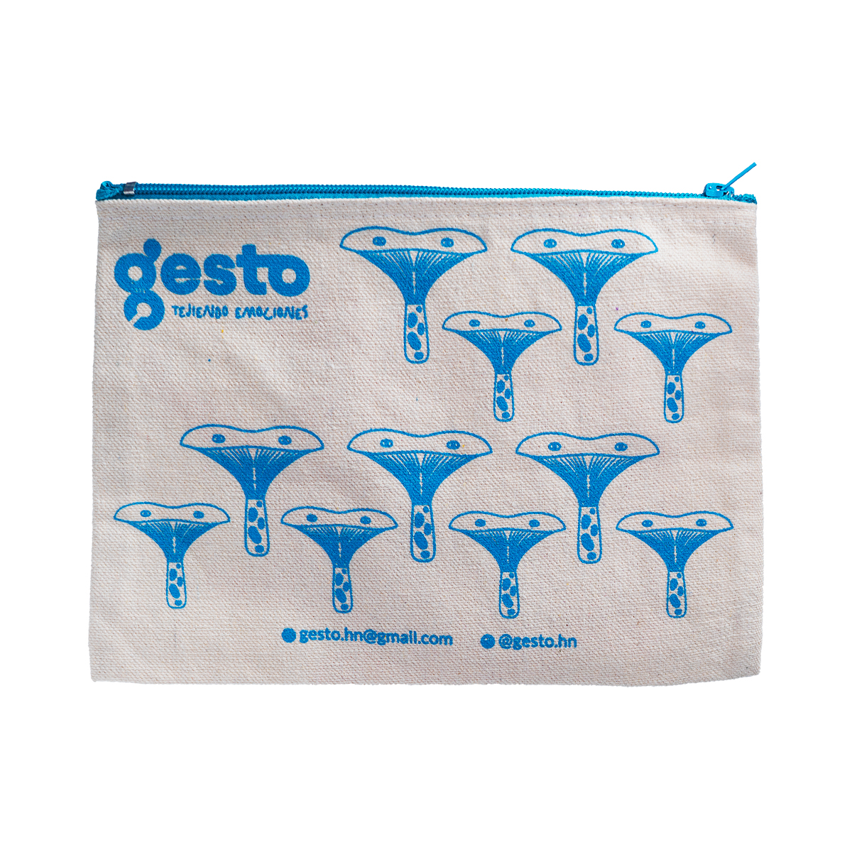 La Cosmetiquera Hongo Azul – Colección GESTO combina funcionalidad y arte en una pieza textil inspirada en la naturaleza hondureña. Elaborada a mano con tela de algodón y estampada con ilustraciones de hongos en tonos azules, representa el equilibrio entre tierra, color y creatividad.
