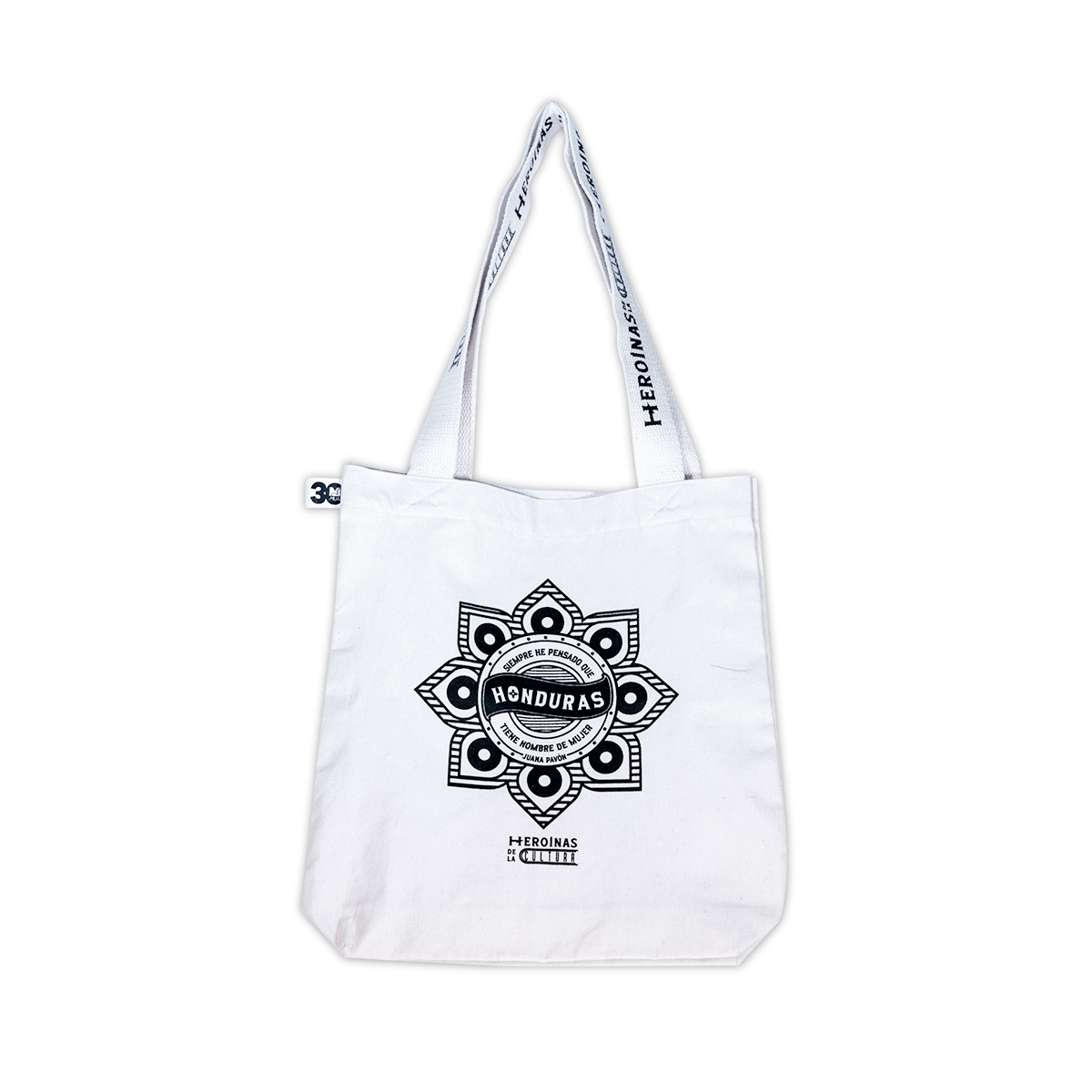 Tote bag de lino de la colección Heroínas de la Cultura. Este diseño lleva la frase “Siempre he pensado que Honduras tiene nombre de mujer” de Juana Pavón, poeta hondureña de voz auténtica e irreverente.