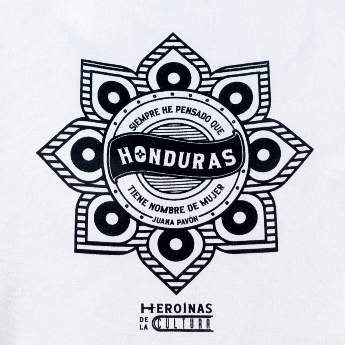 Este tote bag forma parte de la colección Heroínas de la Cultura y rinde homenaje a Juana Pavón, poeta hondureña reconocida por su estilo libre, crítico y profundamente humano. Confeccionado en lino bagdadí, resistente y ligero, mide aproximadamente 38 x 42 cm y cuenta con asas reforzadas que lo hacen ideal para el uso cotidiano. La frase “Siempre he pensado que Honduras tiene nombre de mujer” refleja su manera de entender la identidad del país, vinculándola con la fuerza y sensibilidad femenina. Más que un accesorio, este bolso es un tributo portátil a su visión poética y a la cultura hondureña.