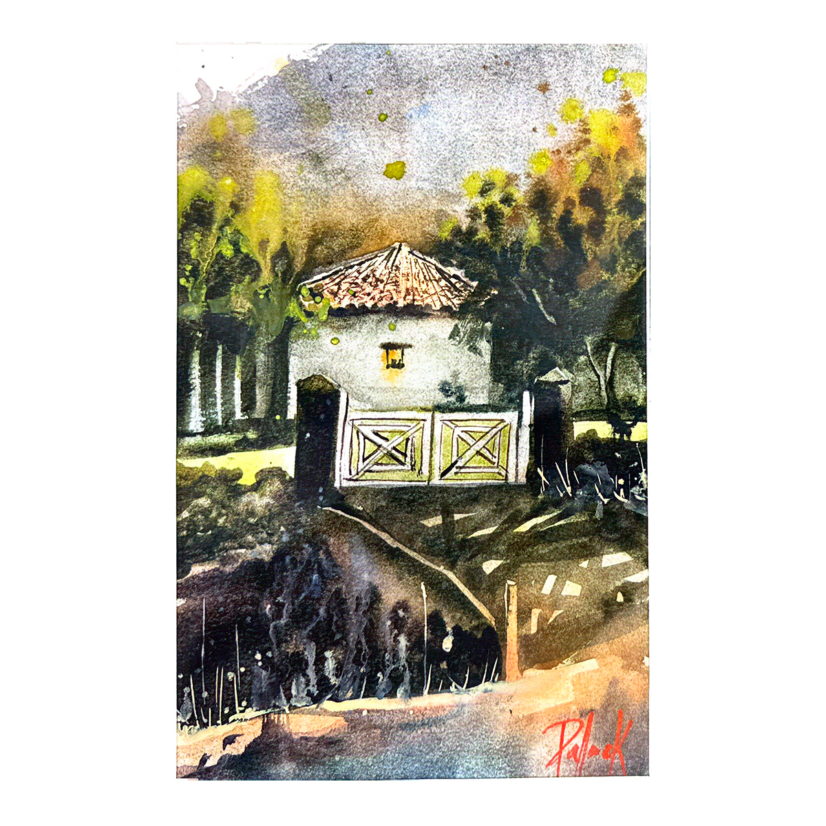 Acuarela original de Palack inspirada en el paisaje hondureño. Una escena tranquila que celebra la armonía entre luz, naturaleza y memoria.