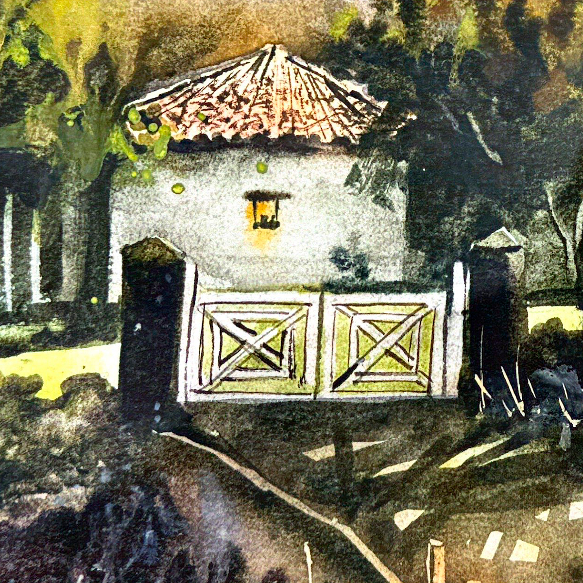 Con una técnica suelta y tonalidades terrosas y doradas, el artista transmite serenidad, memoria y pertenencia. Los pigmentos Daniel Smith, aplicados sobre papel Baohong 300 g y Sanders Waterford, crean texturas y transparencias que evocan la frescura del campo y la nostalgia de los espacios familiares.