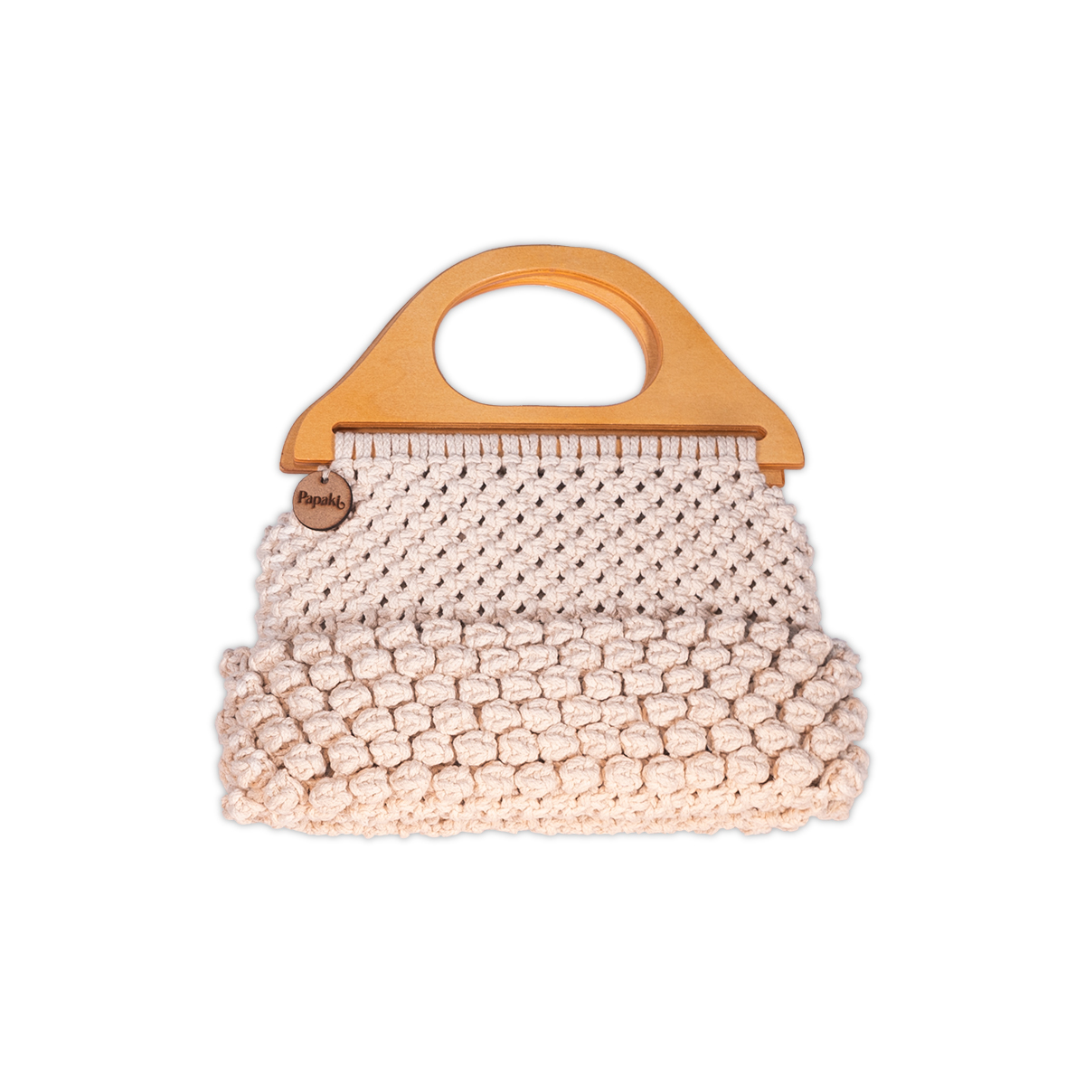 La agarradera de madera le da un toque elegante y orgánico, haciendo de cada pieza una combinación perfecta entre moda y naturaleza. Su interior espacioso permite llevar lo esencial con comodidad, ideal para uso diario o como pieza especial para salidas y eventos.