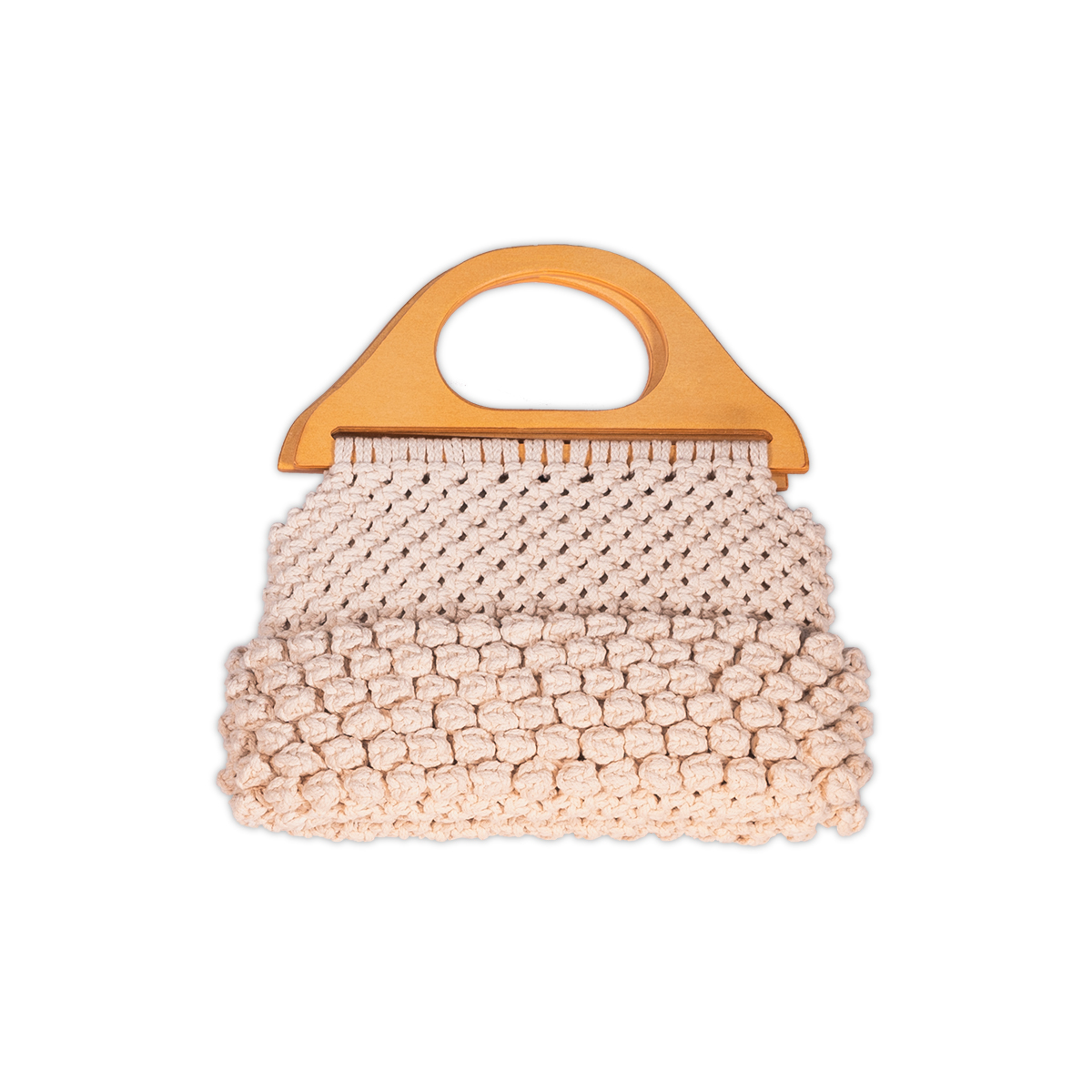 Un accesorio que combina estilo artesanal, diseño atemporal y funcionalidad. Nuestras carteras están tejidas a mano con la técnica tradicional del macramé, utilizando hilo de algodón en tono natural que aporta frescura y versatilidad a cualquier look.