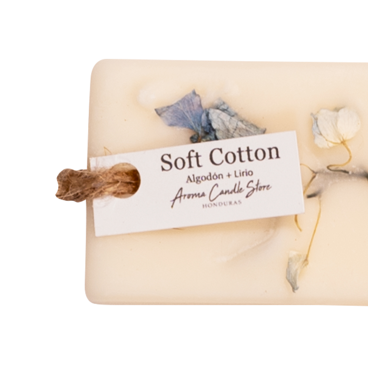 Cera aromática decorada con flores naturales, perfecta para perfumar y embellecer tu closet o espacios pequeños en casa.