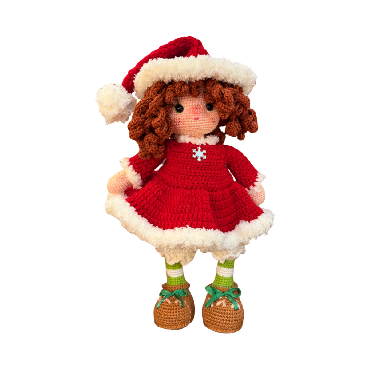 Rosita Navideña es una pieza artesanal tejida a mano por Alegurumis, creada con dedicación y cuidado en cada punto. Su vestido rojo con detalles blancos y su gorro navideño la convierten en el adorno perfecto para celebrar la temporada con calidez y estilo. Sus rizos tejidos, medias verdes y zapatos con lazo aportan un toque único que refleja el esmero del trabajo hecho a mano. Ideal para decorar espacios, acompañar tu árbol o regalar un detalle lleno de ternura y tradición artesanal.