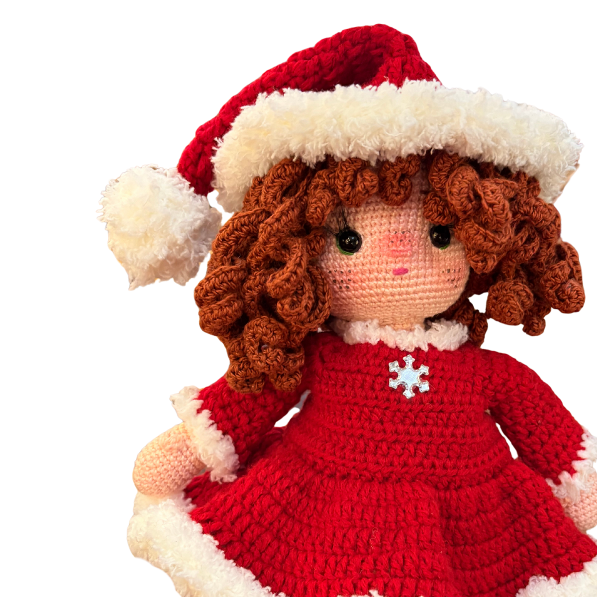 Rosita Navideña tejida a mano por Alegurumis, con vestido rojo y gorro navideño. Un detalle lleno de encanto y espíritu festivo para decorar o regalar.